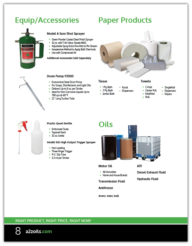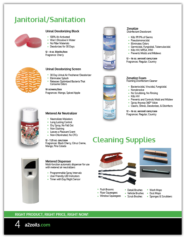 A company selling and distributing commercial chemical and cleaning supplies didn't have much in branded material to further their sales intitiative. I had the opportunity to organize their brand identity and products into a 12 page catalog for their salesmen to exploit. I used Adobe Photoshop to cut out and fix product photos and laid them out in Adobe InDesign.