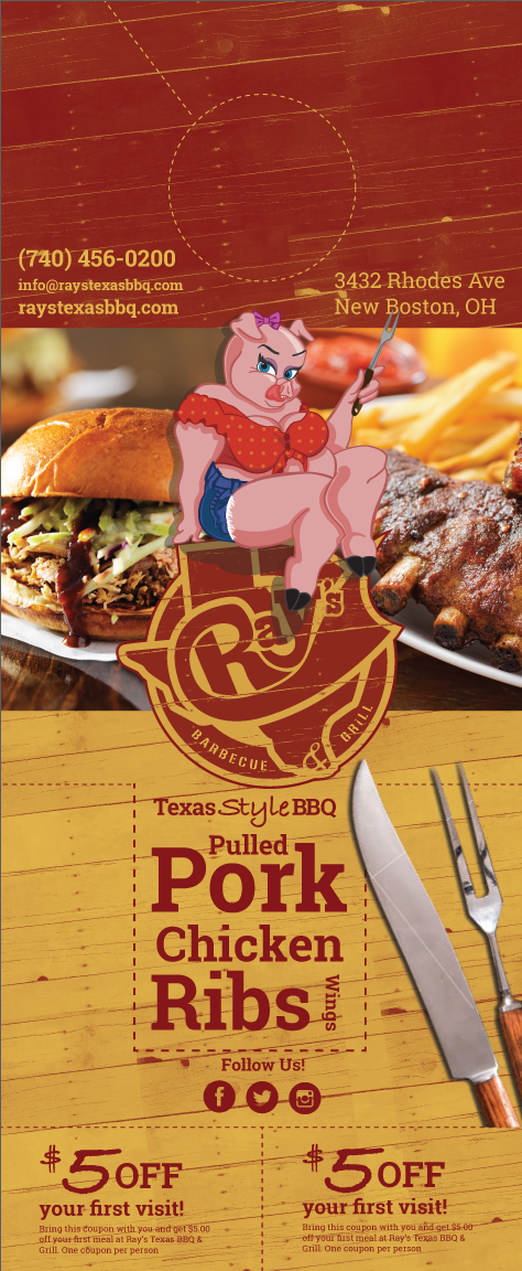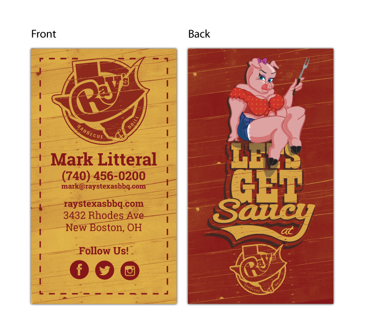 I got to be apart of a local man's dream to bring Texas style BBQ to Southeastern Ohio. I created the "Southern/Texas" inspired identity for the brand and the owner wanted a "saucy" pig mascot to go along with his tagline "Let's Get Saucy." So I took that idea and made it a reality.About